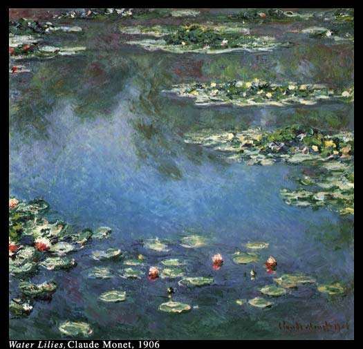| Claude Monet (1840-1928) Claude Monet was a leader of the ImpressionistsÑand in fact, the movement was named after one of his paintings, called Impression: Sunrise. Monet's Impression: SunriseMonet took his paints and canvases into the field to paint directly from nature. He wanted to capture the momentary effects of color and light in his paintings. He created several series of paintings, in which he painted the same subject (a cathedral, haystacks, etc.) many times to capture the effects of sunlight and the seasons. |